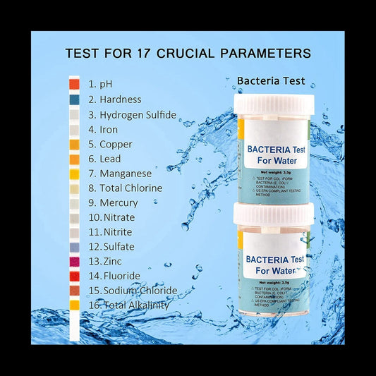 Wassertest Schnelltest auf Schwermetalle, Chlor, Bakterien Stäbchentest 16/17 Parameter