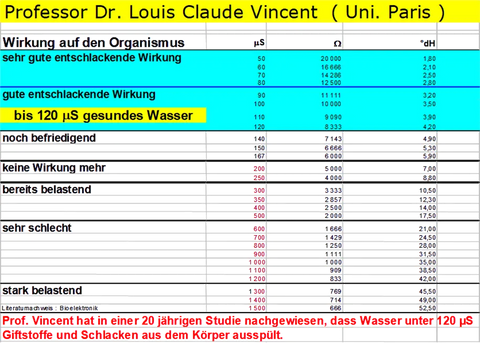 No complete picture of water quality: The TDS value alone says nothing about the safety of the water. It is possible that the water has a high TDS value and is still safe to drink, or vice versa. However, if you value the following important functions: supplying the cells with vitamins, minerals from food and trace elements; detoxification and excretion of metabolic end products, then the water to be drunk should have a conductivity of less than 50 mg/l = 50 ppm!