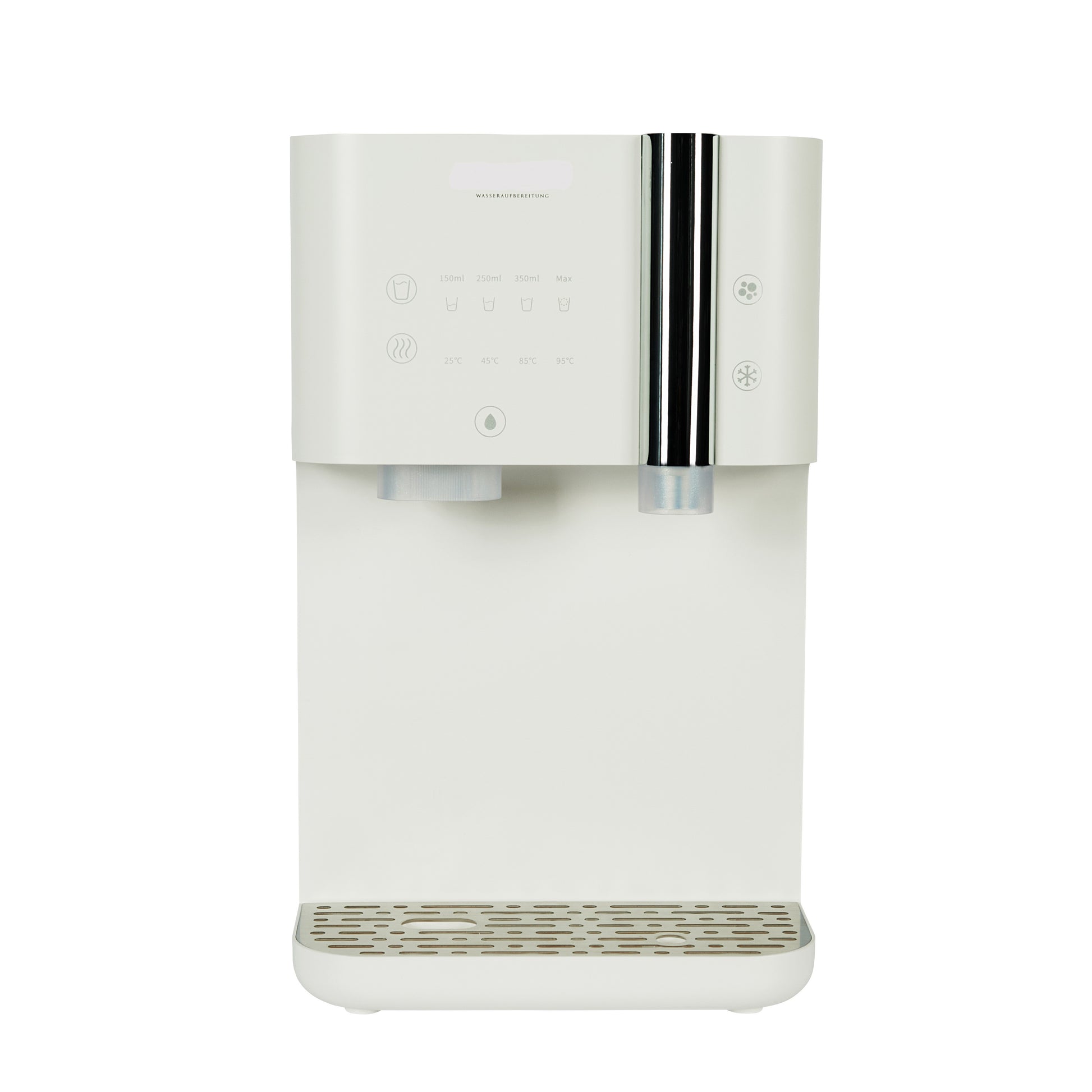 Il nuovo distributore d'acqua Perli è un vero tuttofare e una vera attrazione in ogni cucina. Con questo elegante sistema da tavolo puoi ottenere quasi ogni tipo di acqua premendo un pulsante. Che sia liscio o frizzante, a temperatura ambiente, freddo, tiepido o bollente, ce n'è per tutti i gusti. Inoltre, l'impianto di osmosi inversa integrato e innovativo offre acqua di osmosi pura e cristallina per tutti i tipi di acqua. Regala a te stesso e alla tua salute qualcosa di buono con Perli e non sovraccaricare inutilmente il tuo corpo con sostanze nocive.
